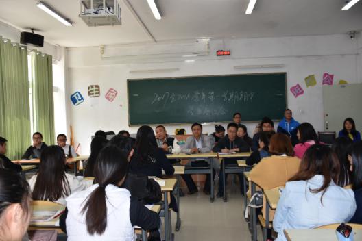 10月30日下午,地理与旅游公司在宁静楼329教室召开了2017-2018学年度第一学期期中教学工作员工座谈会。公司各年级各班班长、团支书、员工信息员共70余名员工代表参加了此次会议,公司党政领导班子、各教研室主任、专兼职辅导员及期中教学检查领导小组成员出席了此次会议。会议由副经理罗绪强主持。
