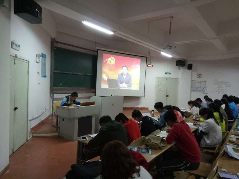 本次培训分为两个部分,刘静对第一部分内容做了详细的解读,让所有入党积极分子清楚本次培训的目的、内容、培训方式和考核形式,并对有关要求做了重点讲解。她还要求所有入党积极分子在学习过程中,应该把关于党的知识熟记于心,并落实在行动上。第二部分是党课第一讲,主题为《党的性质和奋斗目标》,以播放视频的形式让同学们自主观看并思考体会。学习过程中同学们坐姿端正,热情饱满,认真学习党的基本知识。