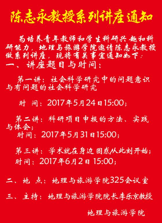 地理与旅游公司陈志永教授系列讲座