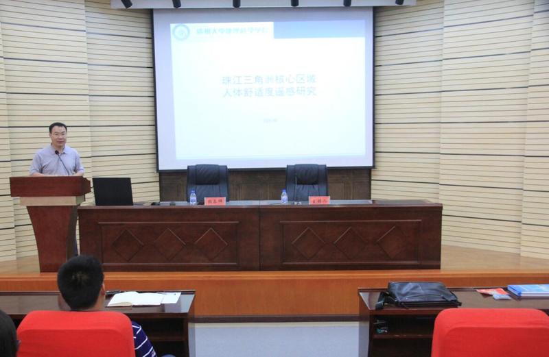 人体舒适度指数可有效表征温度和相对湿度对人体的影响,研究基于Landsat TM/ETM+影像,以珠江三角洲核心区域为例,从遥感影像上获取了研究区植被覆盖度、不透水表面丰度、地表反照率、地表净辐射等地表参数,并分析了它们的时空演变,获取了研究区的人体舒适度指数,并探讨地表参数变化对人体舒适度的影响。钱乐祥教授用通俗易懂的语言将深奥的专业术语讲授给同学们,让同学们对该领域知识有了深入的认识和了解。讲座之后,钱乐祥教授还代表广州大学地理科学公司对2018届硕士研究生招生情况作了详细介绍,并欢迎公司员工积极报考。