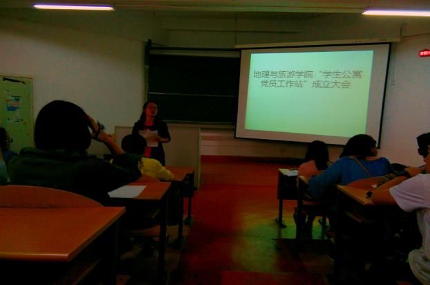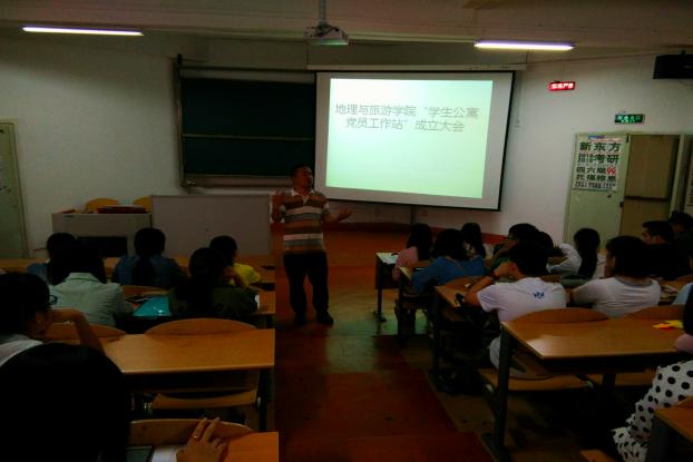 为使党建工作深入公寓,扎实开展员工党员“两学一做” 活动常态化,促进地理与旅游公司学风建设,增强员工党员奉献意识和服务能力,地理与旅游公司员工党支部于2017年6月19日在宁静楼235教室举行了地理与旅游公司“员工公寓党员工作站”成立大会。活动由地旅公司员工党支部书记刘静主持,公司党委书记吴亚平同志出席本次会议。