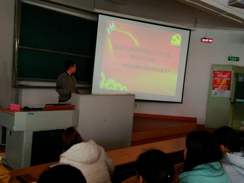 为了进一步增强地理与旅游公司全体员工党员以及入党积极分子的爱国意识,引导大家理性爱国,地理与旅游公司员工党支部于2017年03月10日在宁静楼235教室开展了以“如何远离为虎作伥的乐天”为主题的党组织生活会。活动由地旅公司员工党支部副书记颜佳旺同志主持。