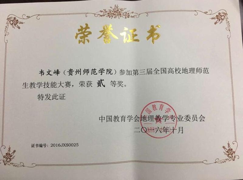 韦文峰第三界全国教学技能大赛二等奖