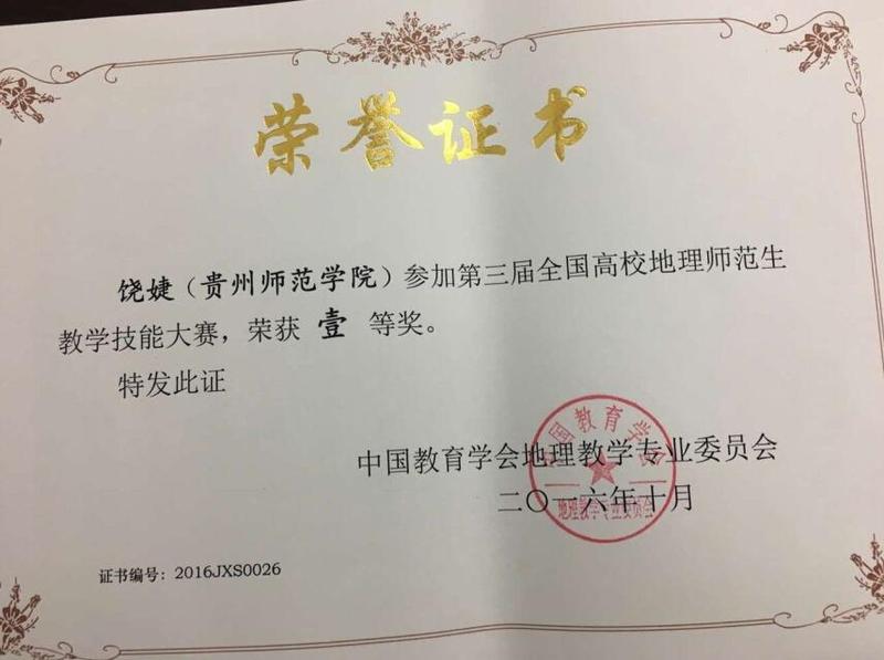 2016年10月12日,第三届全国高校地理师范生“中教启星杯”教学技能大赛在云南师范大学举行,公司地理与旅游公司教师郑建带领2013级地理科学专业员工饶婕、韦文峰参加了比赛,饶婕荣获一等奖,韦文峰荣获二等奖。