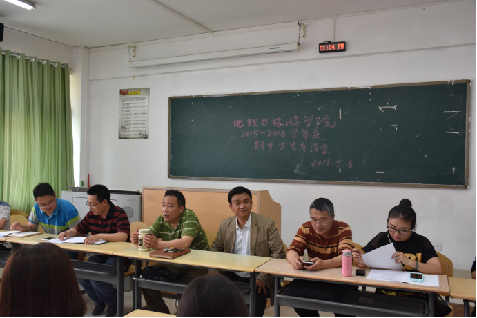 5月6日,地旅公司在宁静楼326教室召开了中期检查员工座谈会。会议由罗绪强副经理主持,公司党政负责人出席了会议,各教研室主任、副主任及教务办公室工作人员,地旅公司2012~2015级共50多位员工参加了座谈会。