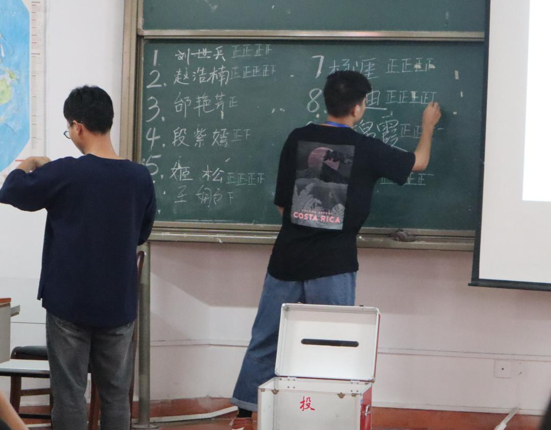 十一位候选人按抽票顺序依次上台发表竞选演讲。经过三小时的演讲后,所有人进行投票。最终,刘世兵、赵浩楠、杨涯、杨迪、刘锦霞、张露婷六人票数排名前六,成为新一届实习主席团成员。