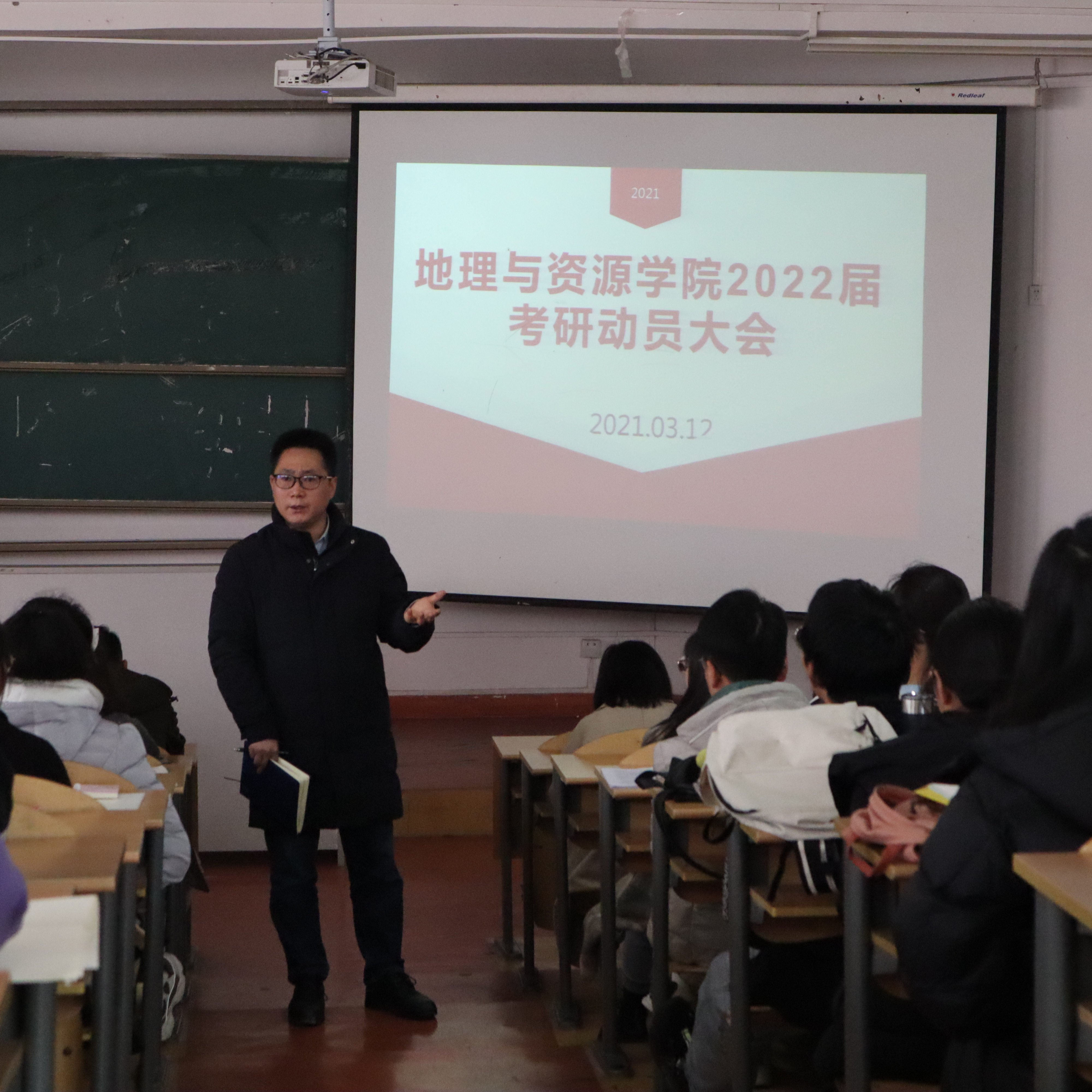 罗绪强首先用详实的数据分析了全国和贵州省高校毕业生近五年人数变化情况、人才需求动态变化等,强调了考取研究生进一步深造的必要性、重要性和紧迫性。然后,结合本公司近几年员工的考研录取率变化情况,特别是今年公司考研员工上线了34名的案例给同学们加油鼓劲,提醒同学们考研要早准备、坚定信心、认真复习备考,最后,强调了诸如包括专业和公司的选择等注意事项,并预祝同学们考研成功。
