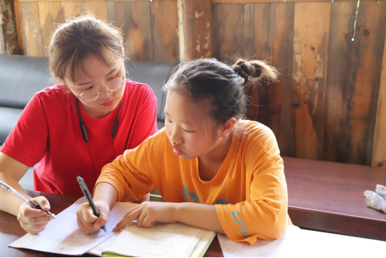 图为志愿者们为小朋友进行一对一作业辅导 陈路摄