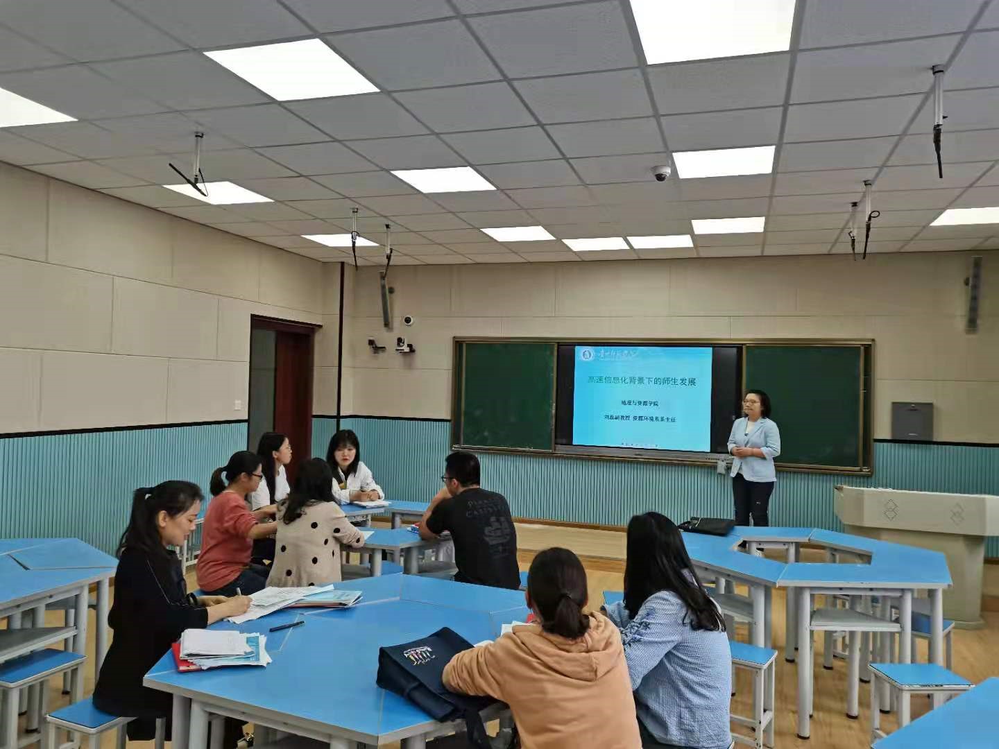 三位老师分别对跟岗单位的授课内容、授课方式等与各自教研室老师进行分享,并着重分析了高校和地方中学教学方式、引导员工的差异。同时明确了随后2个月跟岗学习的目标。