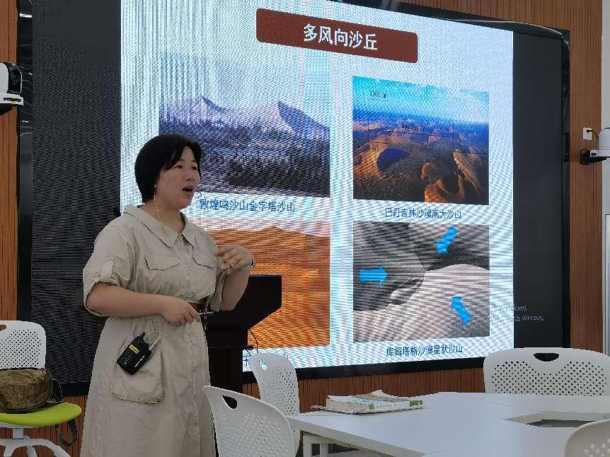 6月16日上午10点半,杨转玲老师主讲《自然地理学》中风沙地貌各类形态辨别以及形成过程及因素。通过展示干旱荒漠区分布图以及中国年降水量等值线图来带领员工一起分析图表,锻炼了员工的读图能力,并使员工们活跃地加入到课堂活动当中来。之后,杨老师讲到风沙作用,为我们介绍了两位风沙科学家,培养了员工们的科学素养,紧随其后,杨老师向员工们展示了风棱石、石窝、风蚀蘑菇、风蚀柱、风蚀残丘、等图片,利用直观教学法使员工们更加直观地感受到风蚀地貌形态,而不是知识点仅存于书本层面。杨教师教学思路清晰,对课程标准把握深刻到位,运用教材合理有度。新课标对传统教学方式是一种极大的颠覆,过去是讲究教为主导,学为主体。现在老师更像一名策划,看上去是解放了教师,而真正的是发动员工,让他们自主、合作、探究学习;让他们学会读书、勤于思考、善于质疑、敢于发言。其中很多工作都还需要老师去引导、点拨。即对老师的要求更高了。在对课标、教材深刻理解的同时,还要求老师必须具备宽广的知识面。在员工面前展示的是老师渊博的知识面、敏锐的洞察力、教强的课堂驾驭能力。在课堂上,老师充分尊重员工学习的主体地位,把学习的机会留给员工,相信员工,员工的能力得到了很好的培养。作为教师真正的充当起了组织者的角色,员工在这样的教学活动中,对知识掌握得更加的扎实、灵活,充分按照了本学科的特点。