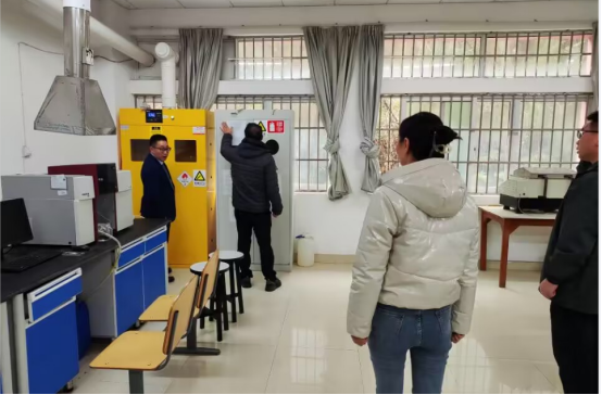 检查组通过实地走访、入室查看的方式,先后对公司实验室、实训场地等多个教学科研实验场地进行了“全过程、全要素、全覆盖”安全排查,重点检查了环境卫生、用水用电安全、危险化学品存储、师生人身安全防护、消防通道是否通畅等。