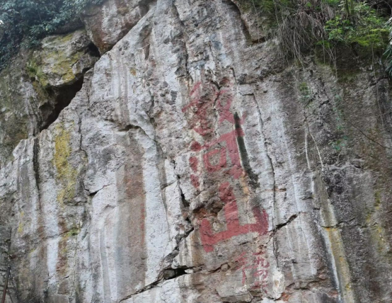 在团支书李小菊的带领下,团员们乘车前往乌当区羊昌镇黄连村长征路起点处,众人呈一列纵队步行前往黄连村的红色基地,路边矗立着红军雕塑,一段段红色标语见证了革命先辈对革命理想的不懈追求。抵达黄连村红色基地时已是正午,首先映入眼帘的便是刷在石壁上“还我河山”四个大字,在正午阳光的照射下,显得熠熠生辉。基地的中心有一面由石头雕刻而成的党旗,党旗下面篆刻着入党誓词,誓词时刻告诉着共产党人身上应当肩负的使命与责任。