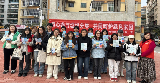 为加强大家的环境保护意识以及垃圾分类意识,2023年11月17日,2022级地理科学二班团支部15名同学与社区新创路街道团工委联合开展了“呵护绿色家园”主题社会实践活动。此次活动分为两个环节进行,第一个环节,同学们认真倾听了有关保护环境以及有关垃圾分类的专题讲座,得到了许多感悟,大家都争先恐后的分享了一些自己对垃圾分类,爱护环境的看法。第二个环节,组织同学们到社区里发放关于垃圾分类爱护环境的宣传单,号召更多的人加入到爱护环境的队伍当中去,活动过程中同学们主动将社区里街道上的垃圾按照分类丢进垃圾桶,带头将垃圾进行分类,更好的呼吁大家树立垃圾分类意识。最后与社区团支部的各位老师合影留恋结束了此次活动。