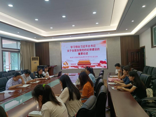 本次党课学习由地理科学类员工党支部书记林丽老师主持,学习由以下三个环节展开:一、观看学习视频;二、员工党员分享心得;三、林丽老师做总结。在播放视频时,全体参会同志保持良好的纪律,认真学习视频内容,并做学习记录。视频播放结束后,各党员同志积极发表学习心得,提到纪律不仅是党的生命线,更是推动我们前进的不竭动力,通过学习习近平总书记关于全面加强党的纪律建设的重要论述,认识到每位党员都应将纪律挺在前面,将其作为行动的准则和指南。最后,林丽老师进行总结并强调,只有严格的纪律,才能铸就坚强的党组织,党的纪律是维护党内团结统一的重要法宝。作为一名员工党员,我们应当自觉地学习党纪,明白其重要性,并将其内化于心,外化于行。