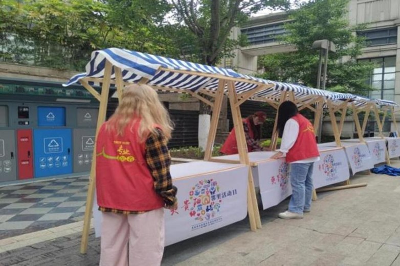 志愿者帮助搭建展台