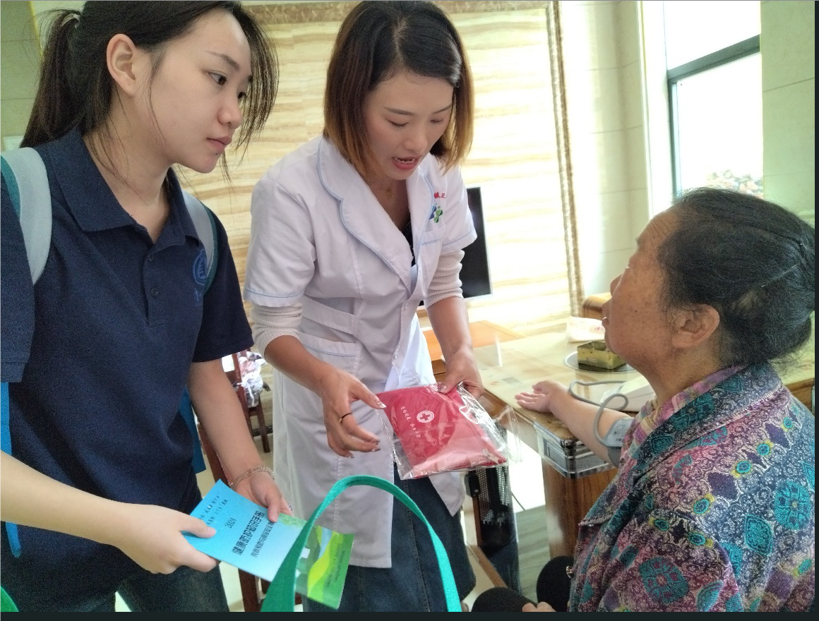宣讲结束后,服务队成员积极协助专家组医生,组织开展义诊活动,免费向村民们测血压量血糖并提供医疗咨询,践行国家基本公共卫生服务,全面做到“医防融合,为健康保驾护航”。针对当地村民高度关注的健康问题,服务队发放了精心制作的宣传手册,包括老年人基础疾病认知、常见突发疾病及初步处理和食品安全防控等科普知识,并发放百余份家庭医疗急救包。活动尾声,服务队成员和专家组通过实地走访入户的方式,深入了解当地村民生活环境和整体卫生健康状况,向不便出行的老年人送上国家基本公共卫生服务。
