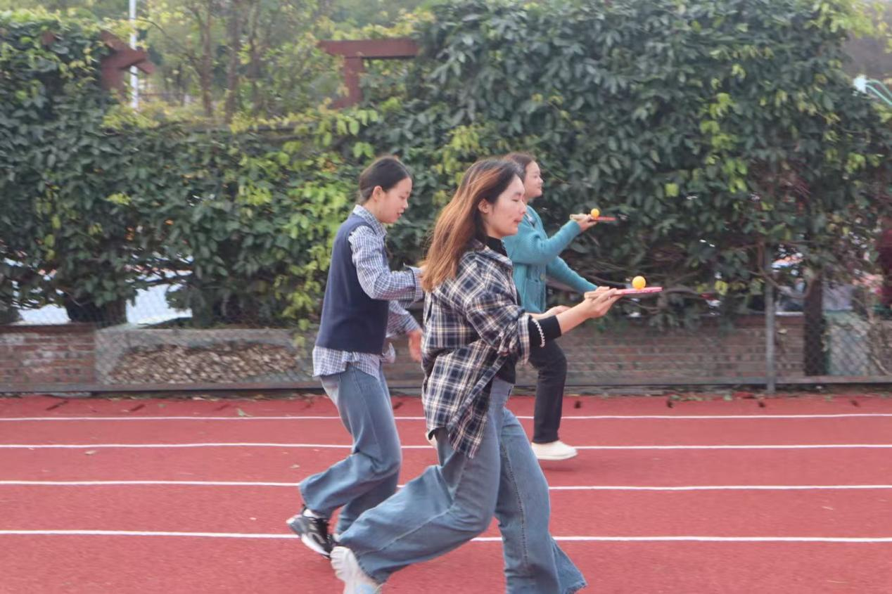 活动期间,运动员们秉持着“友谊第一,比赛第二”的体育精神参与其中。班级篮球赛上,各班队员们展示出极高的热情和良好的竞技状态,一次次精彩的传球,精准的投篮,默契的配合赢得了现场观众的阵阵喝彩;拔河友谊赛中,各班队伍都紧握长绳,齐心协力,为争班级荣誉而拼搏。乒乓球单打比赛也是非常激烈,参赛选手接球迅猛,展现出青年运动员奋勇争先、昂扬向上的精神风貌。趣味团体项目则考验着团队成员之间的默契配合,在盲人足球活动中,大家喊着整齐的口号,步伐一致地向前迈进;趣味马球项目,同学们齐心协力推动马球,展示出了强大的团队凝聚力;而乒乓球接力赛项目则考验着同学们的平衡能力和耐心,大家全力以赴、团结合作,共同为团队的胜利而努力。现场气氛热烈浓郁,加油助威声音齐放,彰显出地资学子积极向上、团结互助的精神风貌。