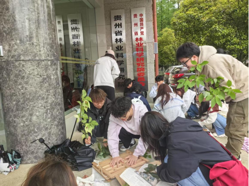 2025年4月12日,地理与资源公司的赵志猛、廖昕荣、郭金梅3位教师带领24级农业资源与环境87名员工,前往贵州省林业科学研究院的“乡土珍稀观赏植物示范基地”进行实践教学活动。此次活动得到了贵州省林业科学研究院的大力支持,在林科院李鹤老师的带领下,师生集体参观了贵州省林科院的标本馆,进入树木园辨识植物,采集压制树木标本。