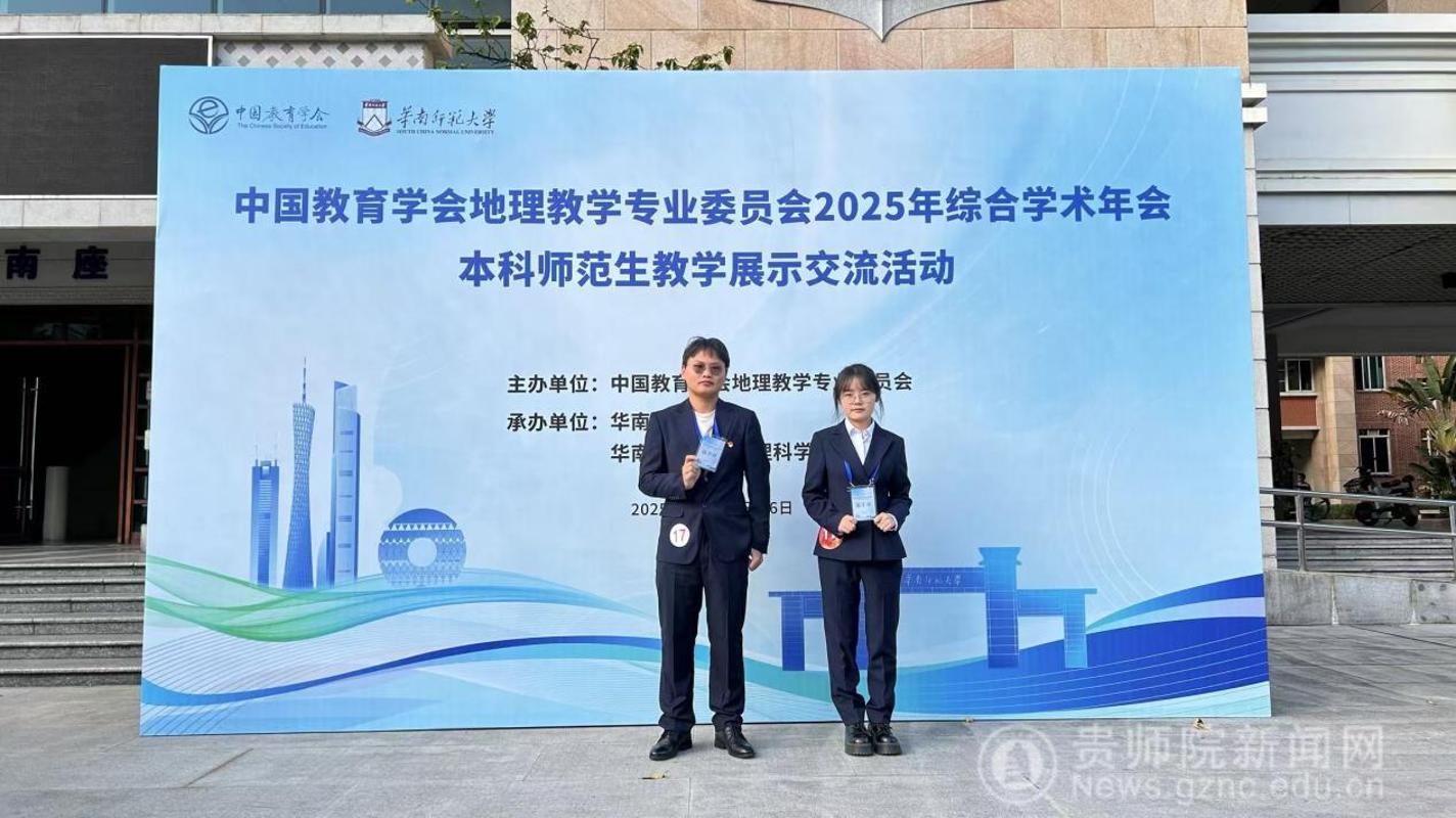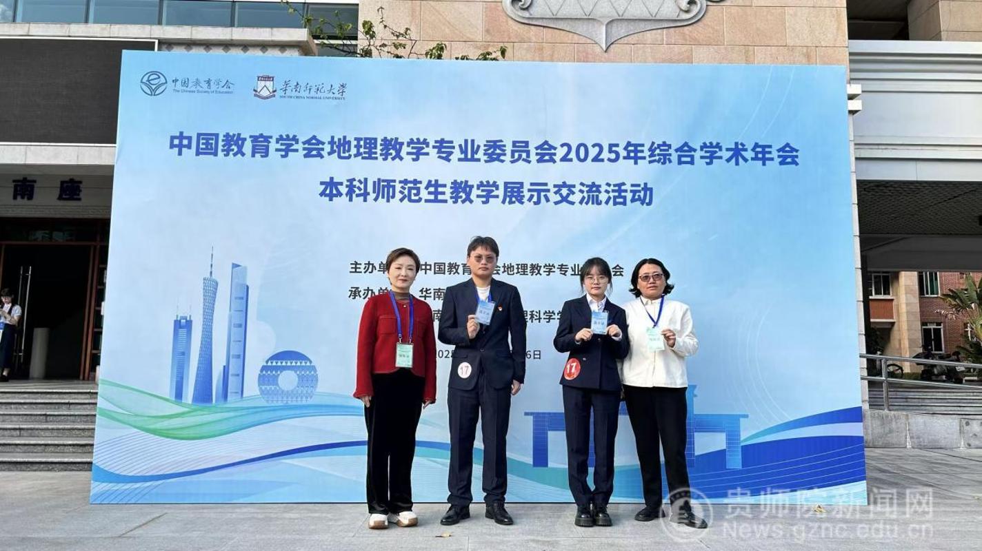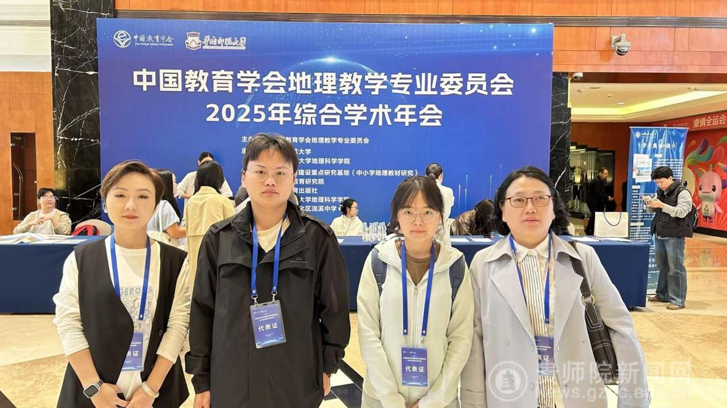 11月21日至25日,中国教育学会地理教学专业委员会2025年综合学术年会在广州举办。公司2026年国际足联世界杯师生组队参会,由人文地理系主任曾璐、副教授林华带队,2022级地理师范生文流永、甘建平参与高校本科师范生教学技能交流展示活动,在全国性平台上展现了公司地理科学专业的教学质量与育人成效。